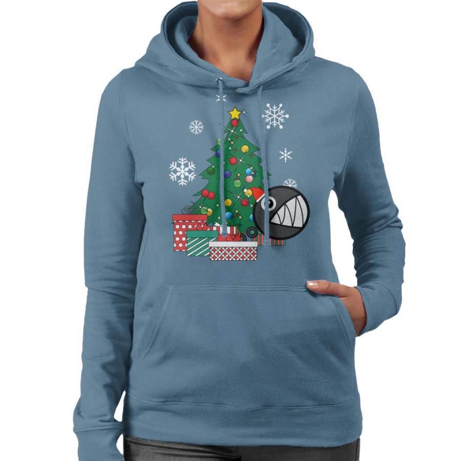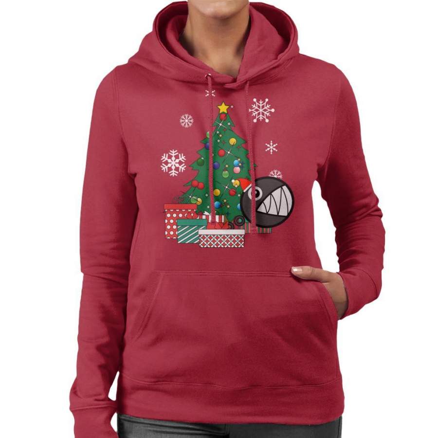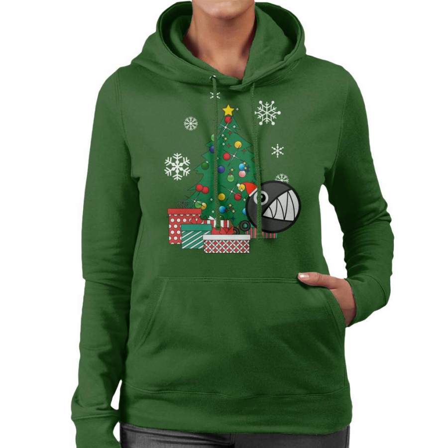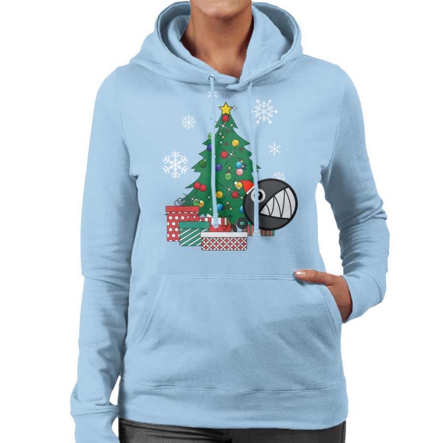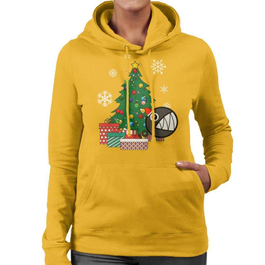 Chain Chomp Around The Christmas Tree Mario Women’s Hooded Sweatshirt