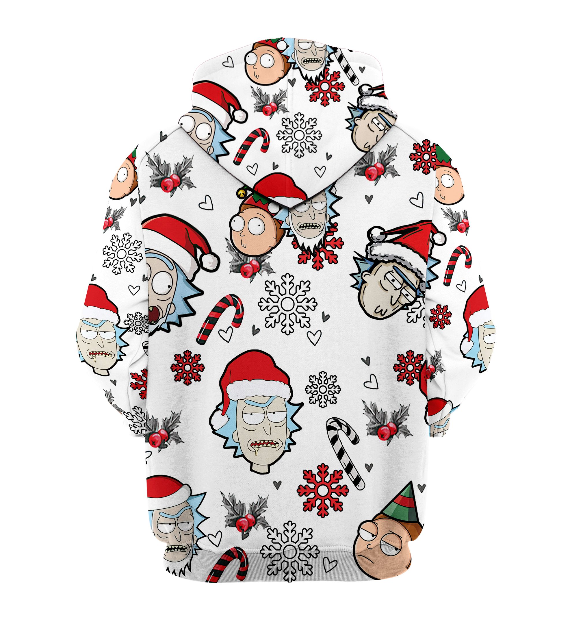 Character Cartoon Christmas Rick And Morty Pattern Hoodie All Over Printed 3D Unisex Men Women