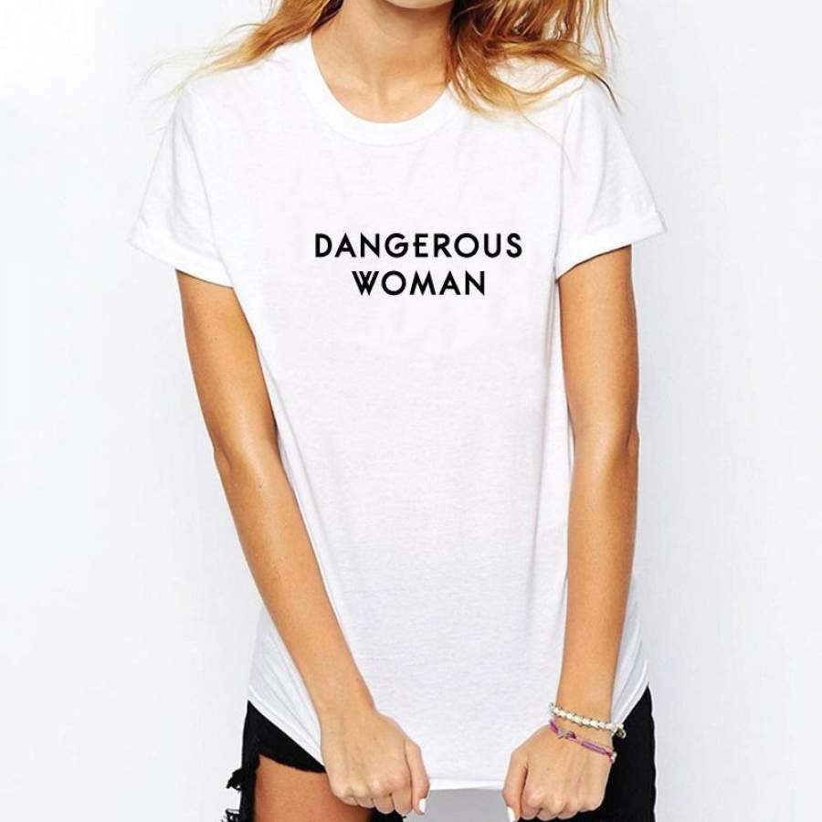 Dangerous Women Letters Printed Slogan T-Shirt Women Girl Tumblr Fashion Ariana Grande Tee Casual Short Sleeve Shirt Cool LW